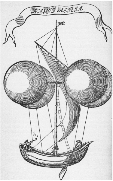 Like the Montgolfiers, he imagines lift being provided by lighter-than-air spheres. But, instead of air, his spheres were filled with ... nothing at all ... with a vacuum. Primitive vacuum pumps existed. So, he hoped to evacuate four large spheres.