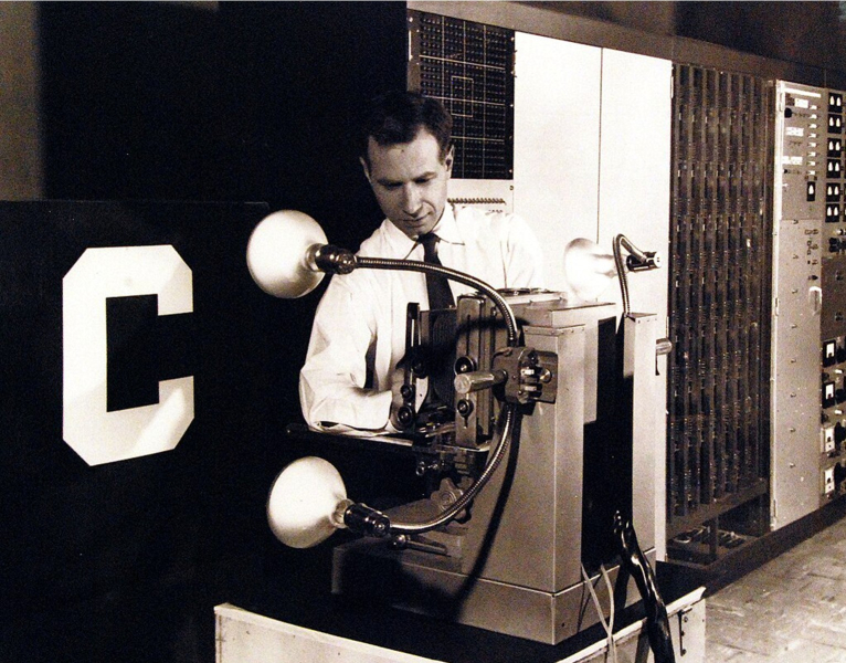 Mark 1 Perceptron, being adjusted by Charles Wightman (Mark I Perceptron project engineer)